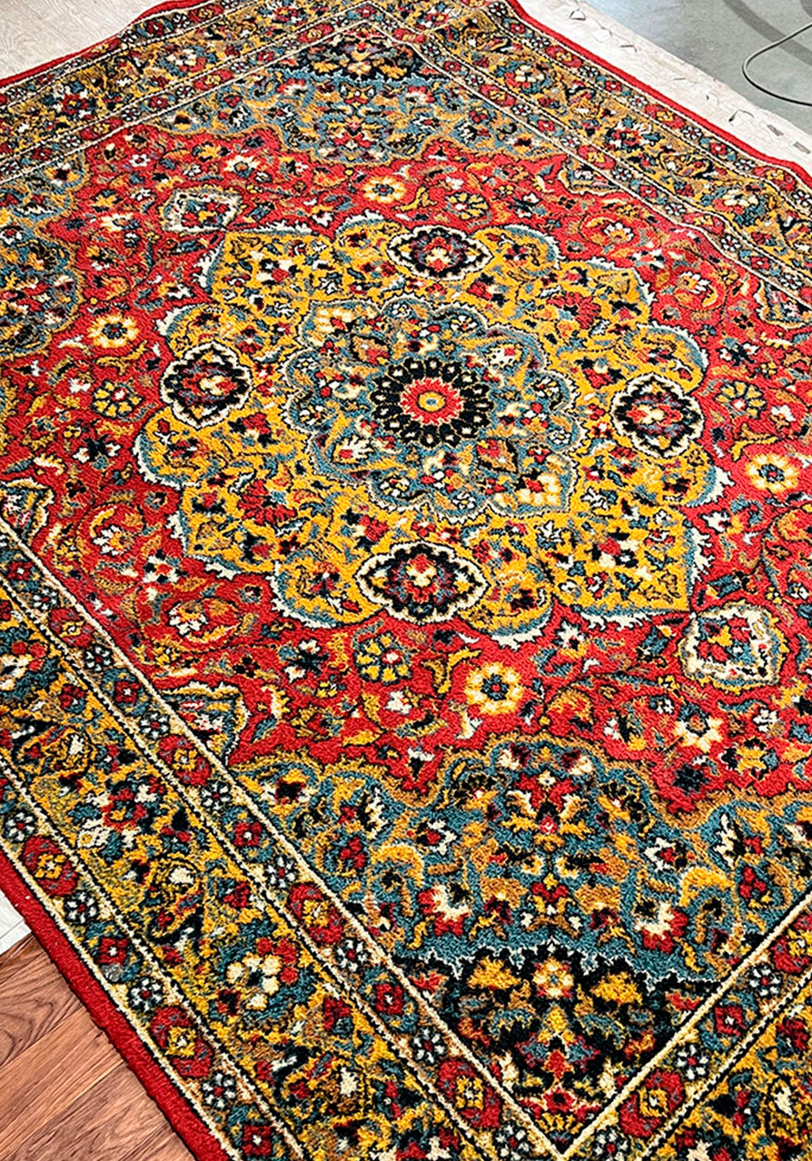 • Оцениваем его состояние. Наши специалисты внимательно осматривают ковёр: определяют его тип, размеры, степень загрязнения и другие характеристики, на основе которых подбирается метод чистки.